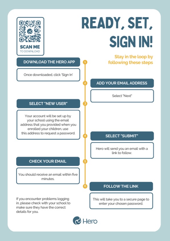 We have changed SMS (student management system) this year and we have moved from ETAP to HERO. HERO is a modern system with many features. We have moved systems for a number of reasons. A major reason for us is its capability with the new curriculum changes. HERO, also has the capability to share your child’s learning so we will not be carrying on with Seesaw. We want to make sure you get support with these changes and we will do that in a number of ways. One way will be sharing small videos on Facebook and creating a space on our website to help you understand the new app and how to use it.