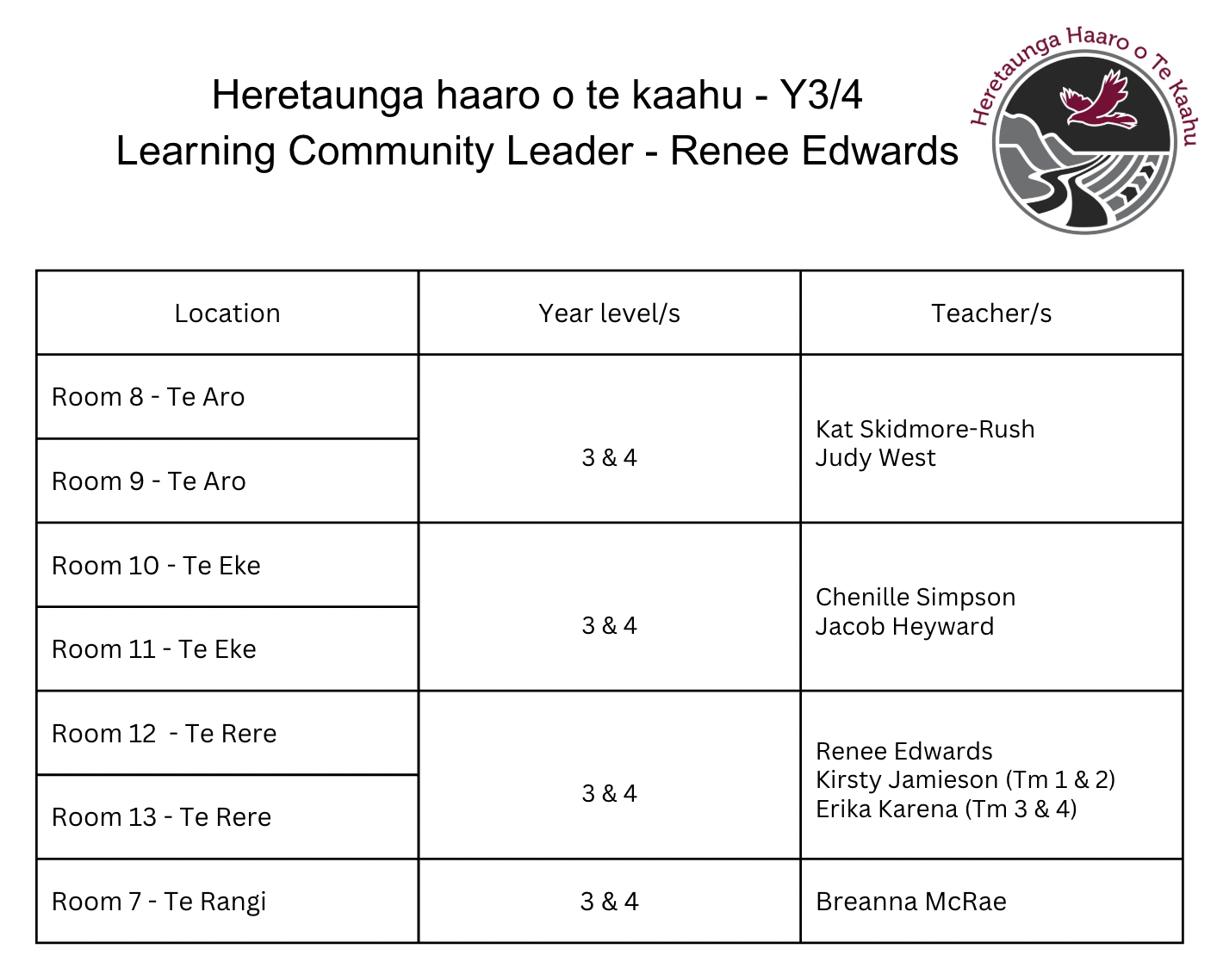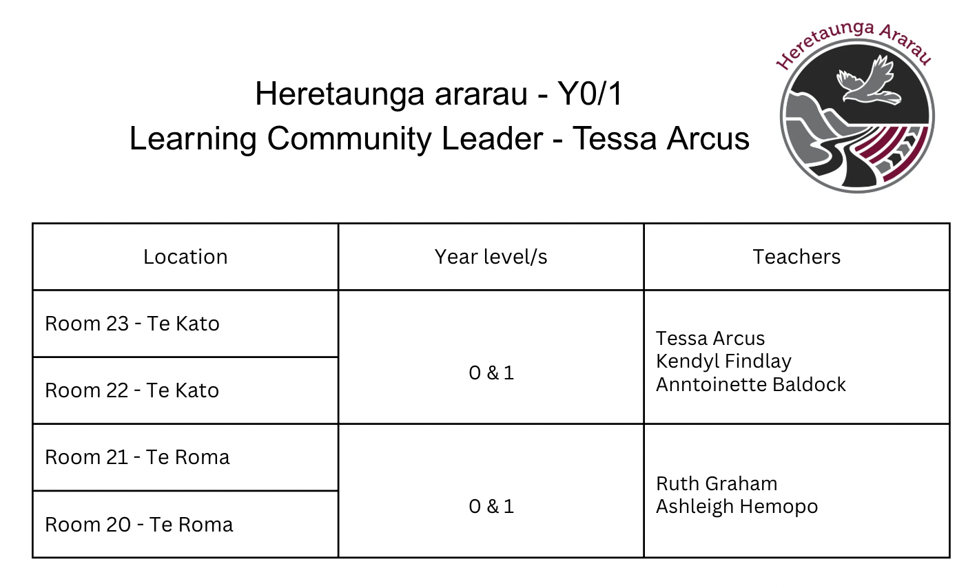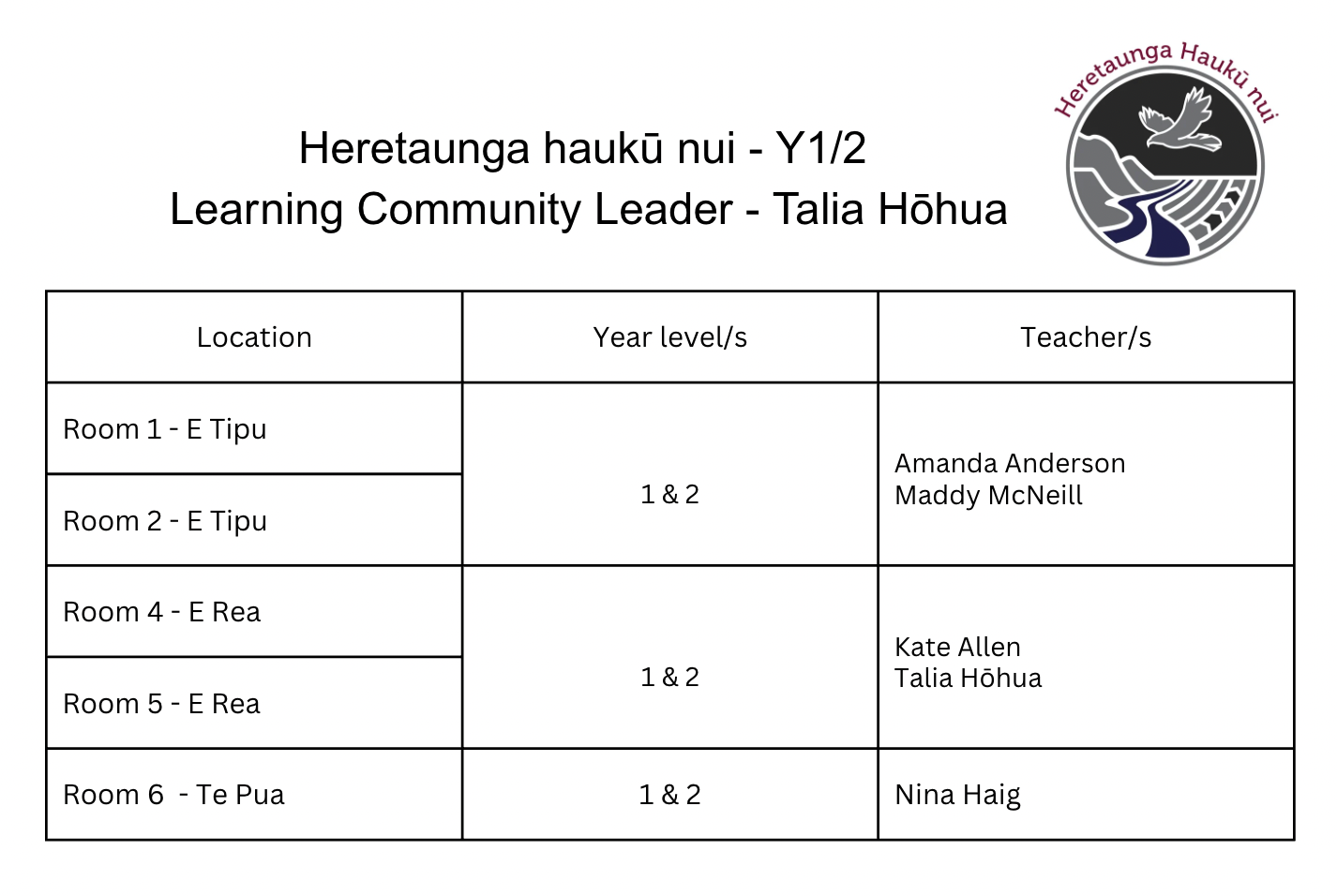 Below is the teaching team overview. The full staff list will be shared with whānau before the start of the school year.